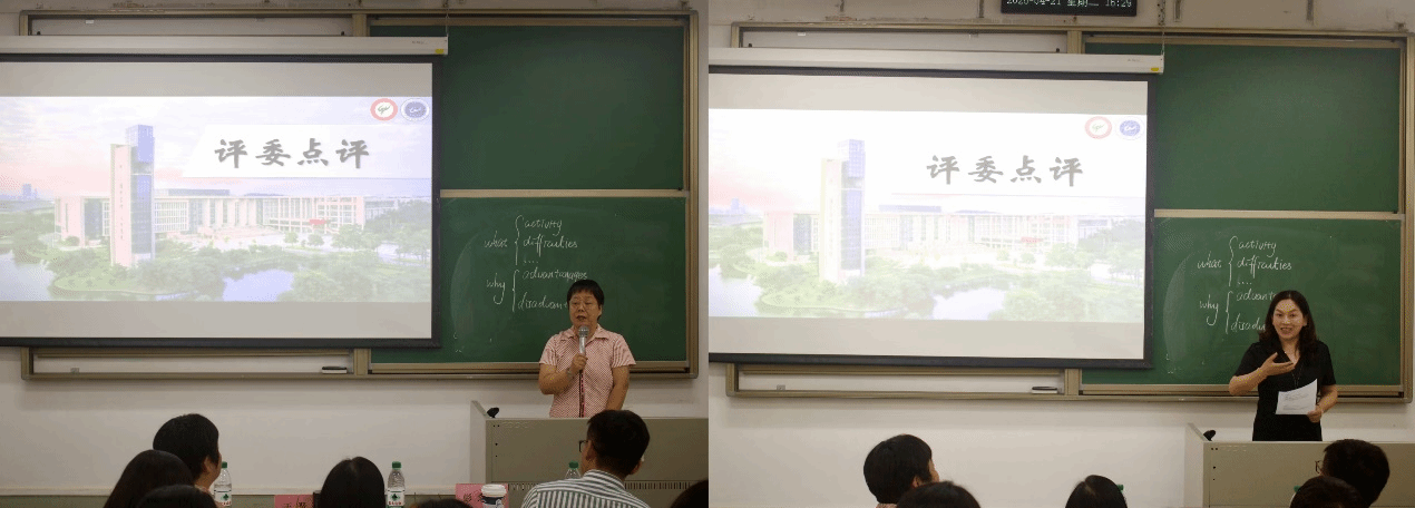 比赛伊始,选手们依次上台进行模拟授课。读写课中,梁雅缘同学深挖阅读文本的写作技巧,语言支架搭建得充分而细致;欧阳霖佳同学使用气泡图搭建内容支架令人印象深刻。读思课中,魏依婷同学气场十足,导入环节巧用笔袋实物展示,吸引观众注意力;金慧雪同学从容大方,流利的语言表达令人钦佩;许棵琦同学深入文本,主题升华独具心裁。听说课中,尹紫微同学亲和力十足,循循善诱,引导学生梳理听力文本信息;陈悦同学导入环节巧用志愿活动带来的好处和不便之处,引导学生辩证思考;蔡志亮同学导入环节使用问题链,难度逐渐递增,自然引入听力文本内容。答辩环节,选手们结合学科核心素养、英语学习活动观等91自拍