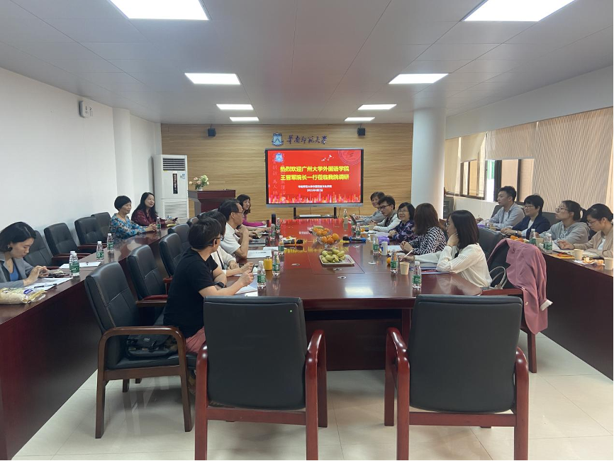 副院长苏远连教授、副院长彭念凡副教授、党委副书记许多恬,英语系副主任、教务办、学工办等一行12人参与本次调研。调研活动受到华南师范大学外国语言文化91自拍