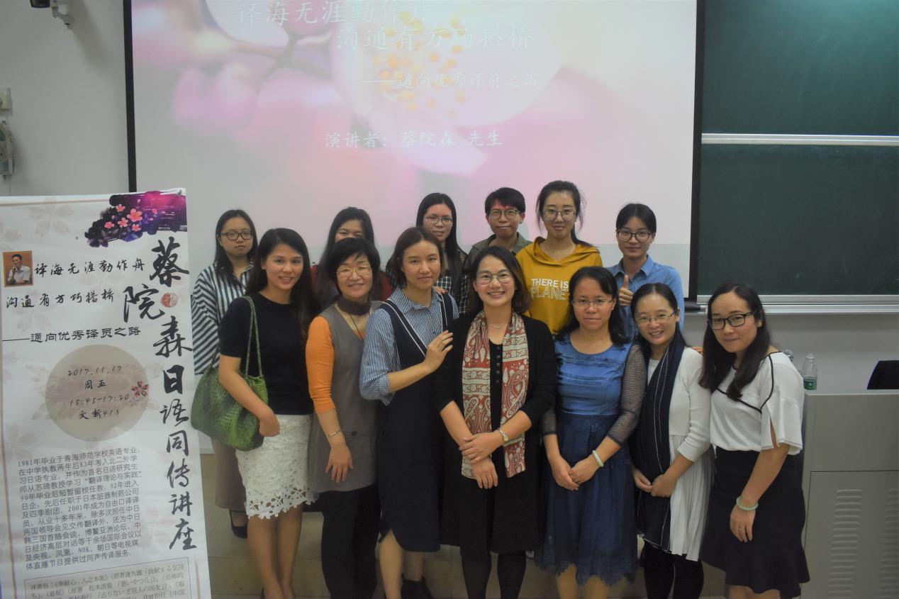 11月17日下午,国内日语资深同传翻译专家蔡院森老师莅临我系,为我系学生呈现了一场精彩绝伦的同传讲座,蔡院森老师重点讲述了有关同声传译这项职业的概况、分享了许多宝贵的经验。我系学生都踊跃地参加了讲座。