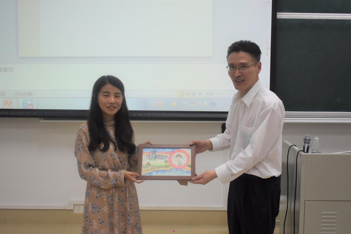 日语161范津秀同学代表我系为蔡院森先生献上画作