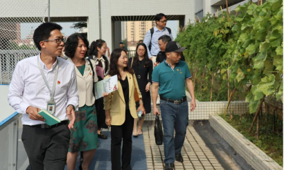 (增城区朱村街第二小学校长刘胜伟带领参观校园环境和文化设施)